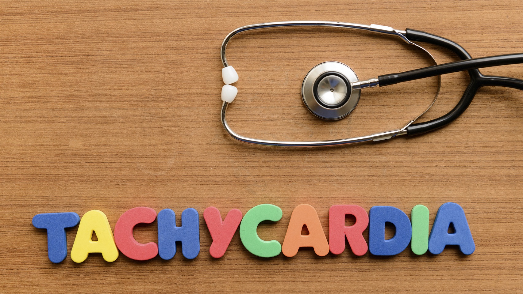 Tachycardia colorful word on the wooden background