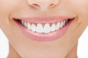 Smile of a beautiful young woman . Over white background.