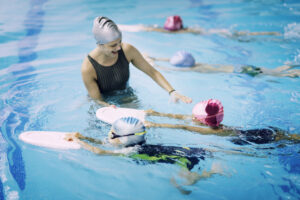 Little swimmers – Kids having a race in swimming class